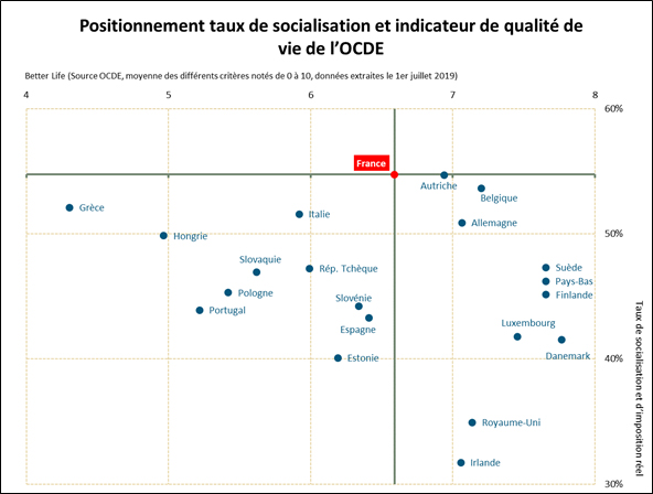 L’étude montre que la pression fiscale et sociale française n’est pas synonyme de mieux vivre.
