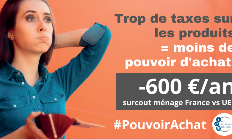 → Lire la suiteLe constat : Les ménages français sont victimes d’une spirale inflationniste nourrie par les impôts sur les produits et notamment les taxes particulières se surajoutant à la TVA. L’enjeu : Faire un moratoire sur les taxes particulières sur les produits. ———————– Le total des impôts sur la consommation est plus élevé en France (12,3 % du PIB) que dans l’Union européenne (11,3 %) et qu’en Allemagne (10,1 %) en 2021. Les impôts…