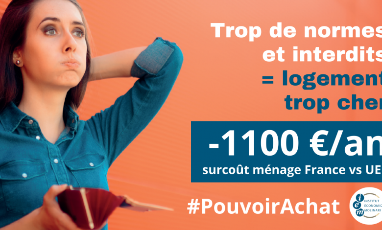 → Lire la suiteLe constat : Les ménages français sont victimes d’un spirale inflationniste nourrie par les prix du foncier. L’enjeu : Assouplir le droit foncier pour améliorer le pouvoir d’achat. ———————– Par rapport à l’UE, un surcoût annuel de 1 100 euros pour un ménage moyen Les prix du logement sont la cause d’un appauvrissement de la population. Le poids du logement dans le budget des ménages est passé en moyenne de 11 %…